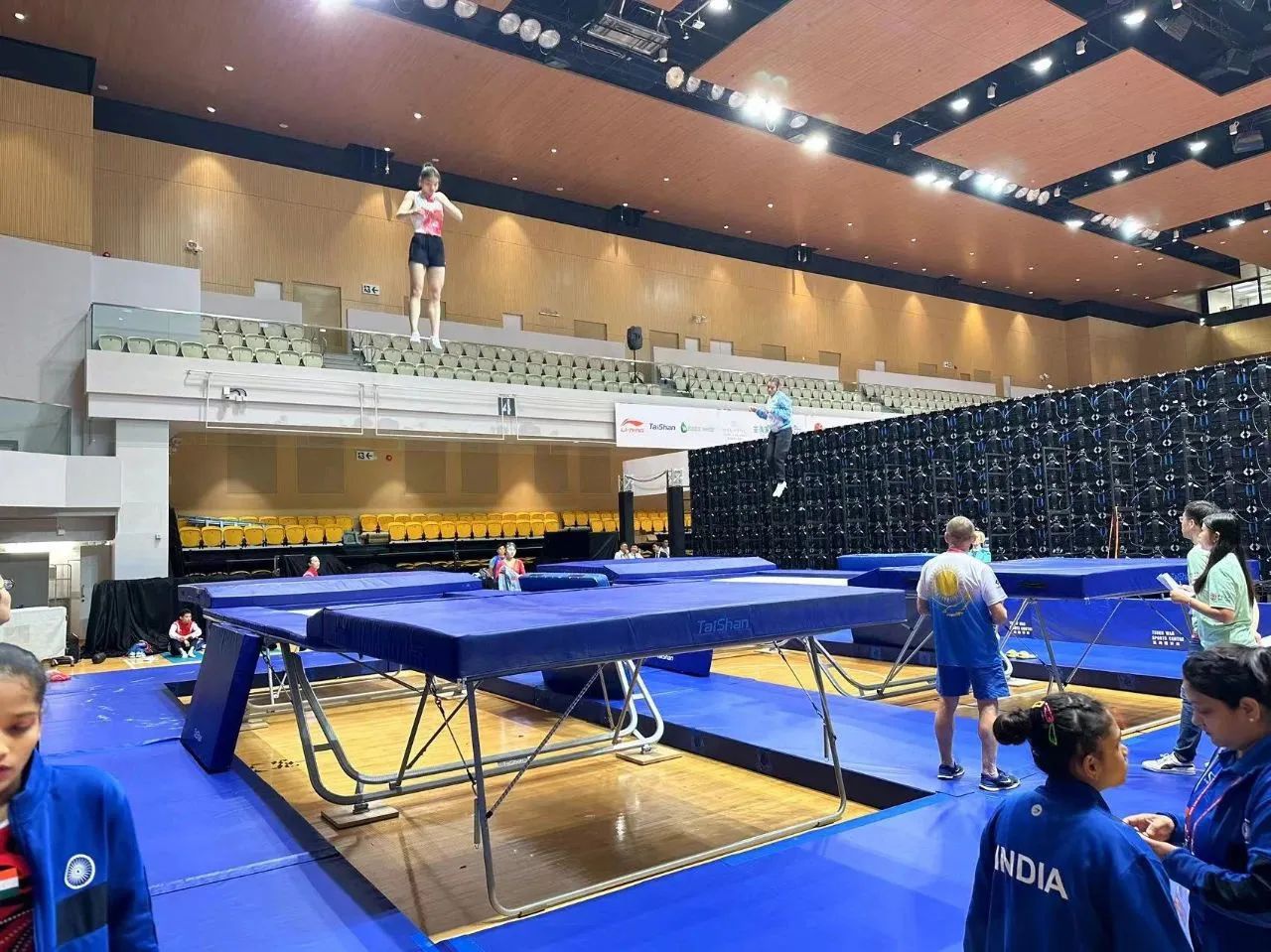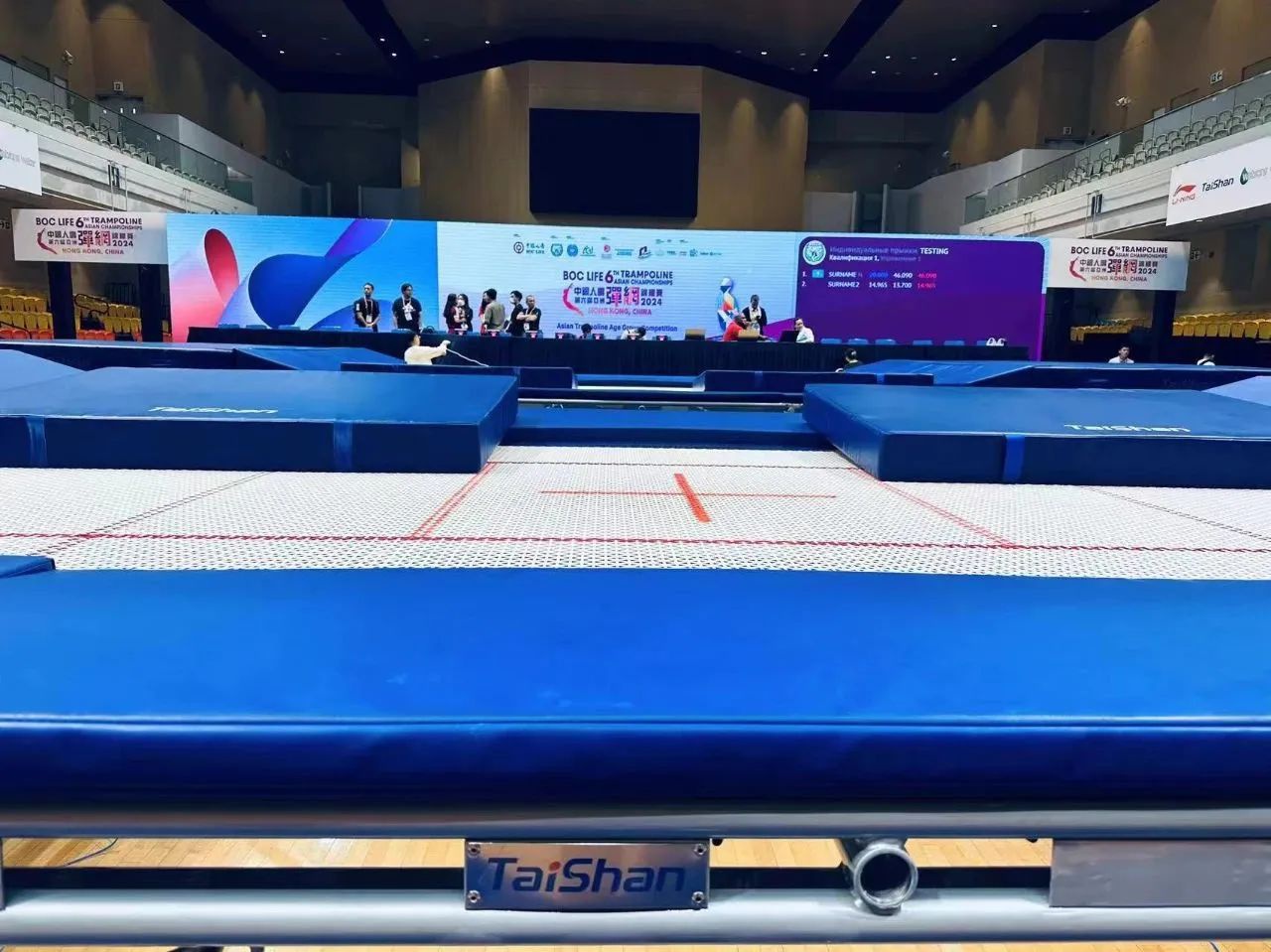 为服务好本届蹦床锦标赛,大奖·国际保障人员严格按照赛事服务手册开展工作,从场馆的规划布局、器材的安装调试、标准高度的校准、过程巡检等各个环节,一丝不苟、严谨细致,确保蹦床器材安装的准确无误,始终践行国际赛场上的中国标准,见证大奖·国际全领域规划、设计、制造、集成、运营、服务一站式解决方案的发展理念。