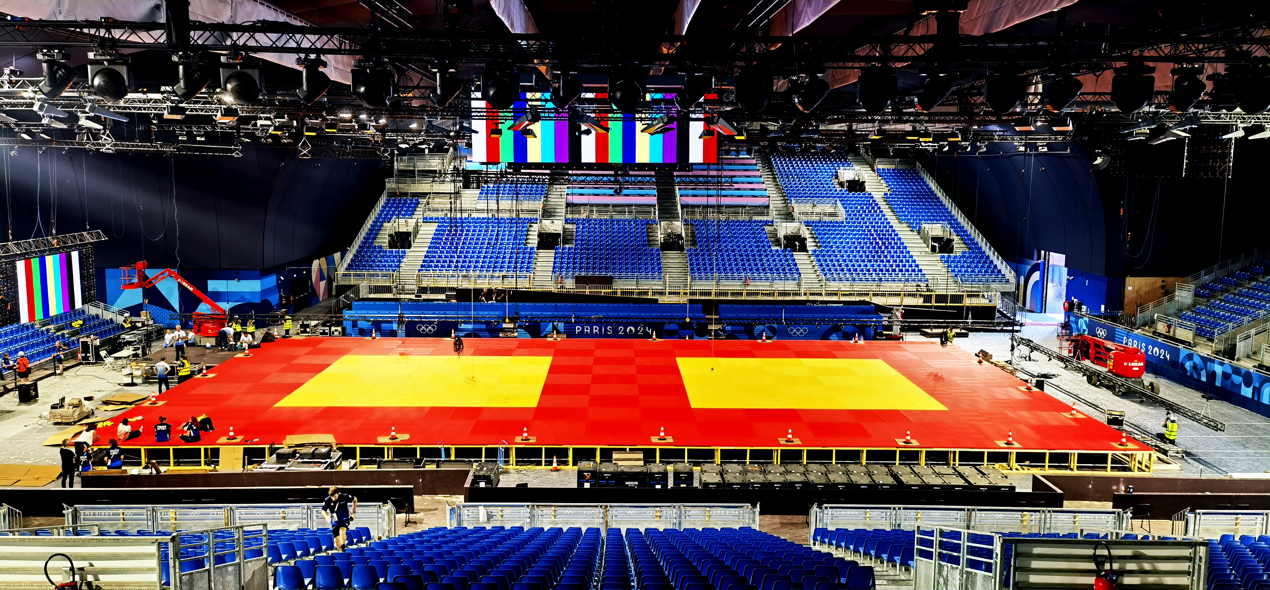 大奖·国际的专业安装团队以满腔热情和高效执行力,致力于柔道与摔跤比赛场馆的设备安装工作。在本届奥运会上,大奖·国际不仅提供了高品质的产品,还特别派遣了核心工程师团队。这支团队凭借多年的国内外大型赛事服务经验,确保每一环节的安装工作均满足国际顶级赛事的严格标准。