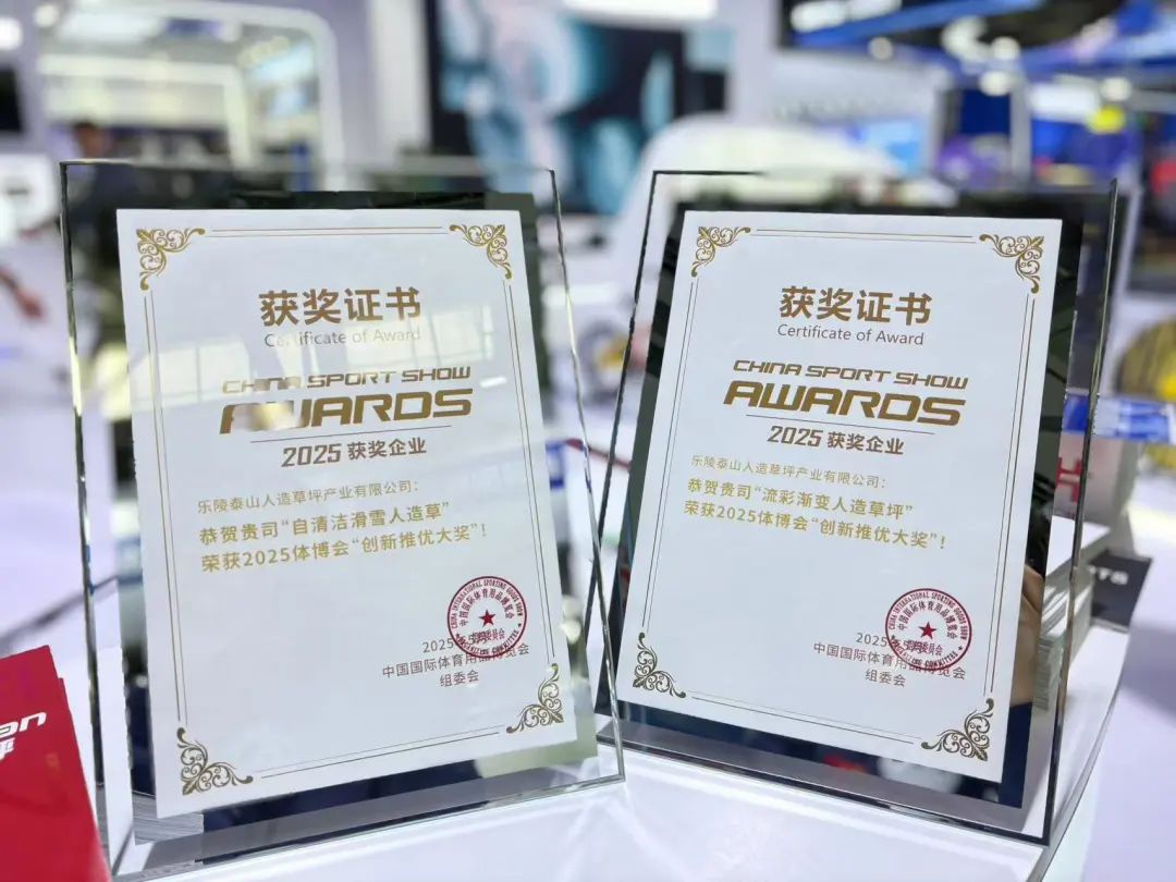 在这次评选中大奖国际人造草坪的流彩渐变人造草坪产品,也获得中国体博会创新推优-中国制造之美专项奖”金奖。流彩人造草坪是一款突破传统的新型艺术草坪,采用独特工艺实现色彩渐变效果,使图案呈现立体三维观感,兼具实用功能和艺术价值。相比普通人造草坪,它能逼真还原油画、国画等艺术风格,适用于运动场地、家居装饰、公共空间美化及商业宣传等多个场景。产品具有经久耐用、环保可回收、耐磨防尘等优势,使用寿命可达数十年。
