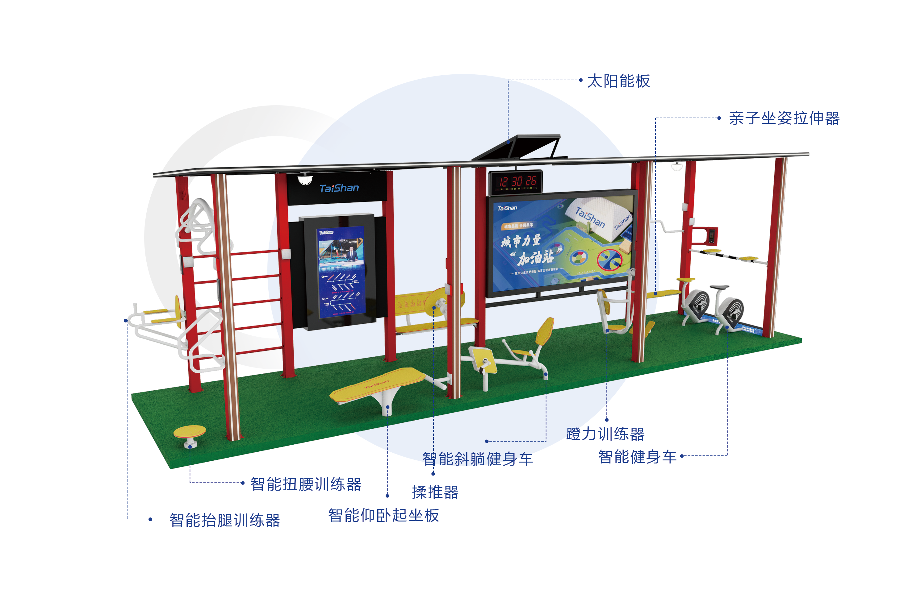 综合健身公交站是由大奖·国际完全自主研发设计,适用于城市公交候车区域的“城市力量加油站”。综合健身公交站配备多种健身项目,能够根据城市需要设计不同健身项目与功能的移动室外健身驿站。依托物联网+互联网和5G技术,能够充分发挥城市运动新型体育服务综合职能,为运动人群提供更多科学健身指导,为城市居民打造更健康的生活方式。公交候车亭在城市的广泛使用,为乘客在侯车时提供躲避日晒雨淋的短暂场所,随着城市的发展以及科技的进步候车环境大为改观,综合健身公交站已经成为城市一道靓丽的风景,多功能化、智能化候车亭将缓解候车时的焦虑情绪,改善人们出行的愉悦心情更是提高社会和谐的有效手段。